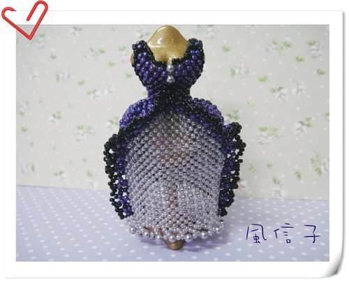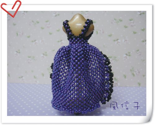 這次用了深紫色珠; 滾邊用的是黑色,所以配起來好像有那麼一點神秘又迷人