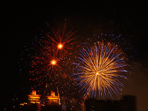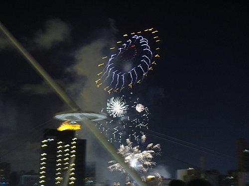 夜晚騎著腳踏車在新光碼頭所拍攝的每日世運整點煙火(共施放十天喔!)