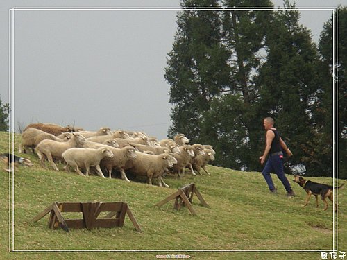 再把綿羊趕下坡,就是看綿羊被牧羊犬趕來趕去...